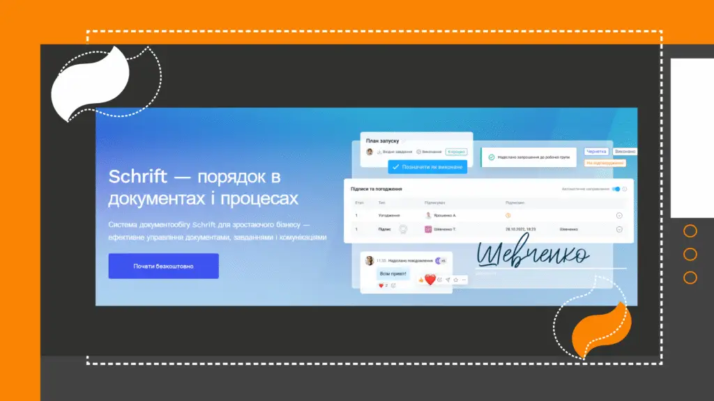Именно такую идею нас попросили донести до своей ЦА представители Schrift, компании, развивающей передовую систему цифрового документооборота.